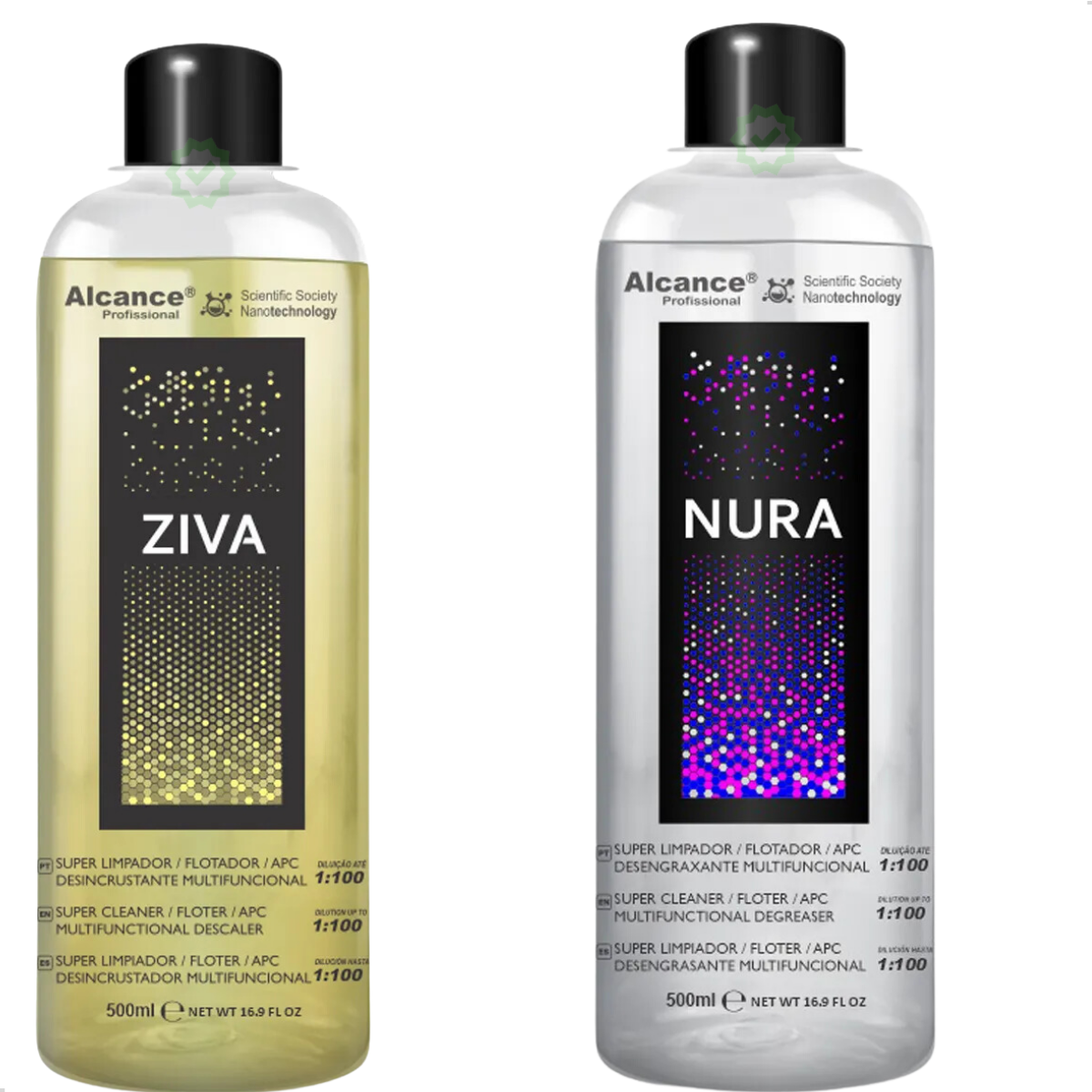 A composição do NURA é hibrida, pois é adicionada uma mistura equilibrada dos solventes e óleos nobres de origem vegetal (coco e banana), enzimas biológicas (extratos de leveduras) e tensoativos anfóteros. Todos estes ingredientes atuam com extrema eficácia em qualquer tipo e nível de sujidade existente sem agredir a superfície.