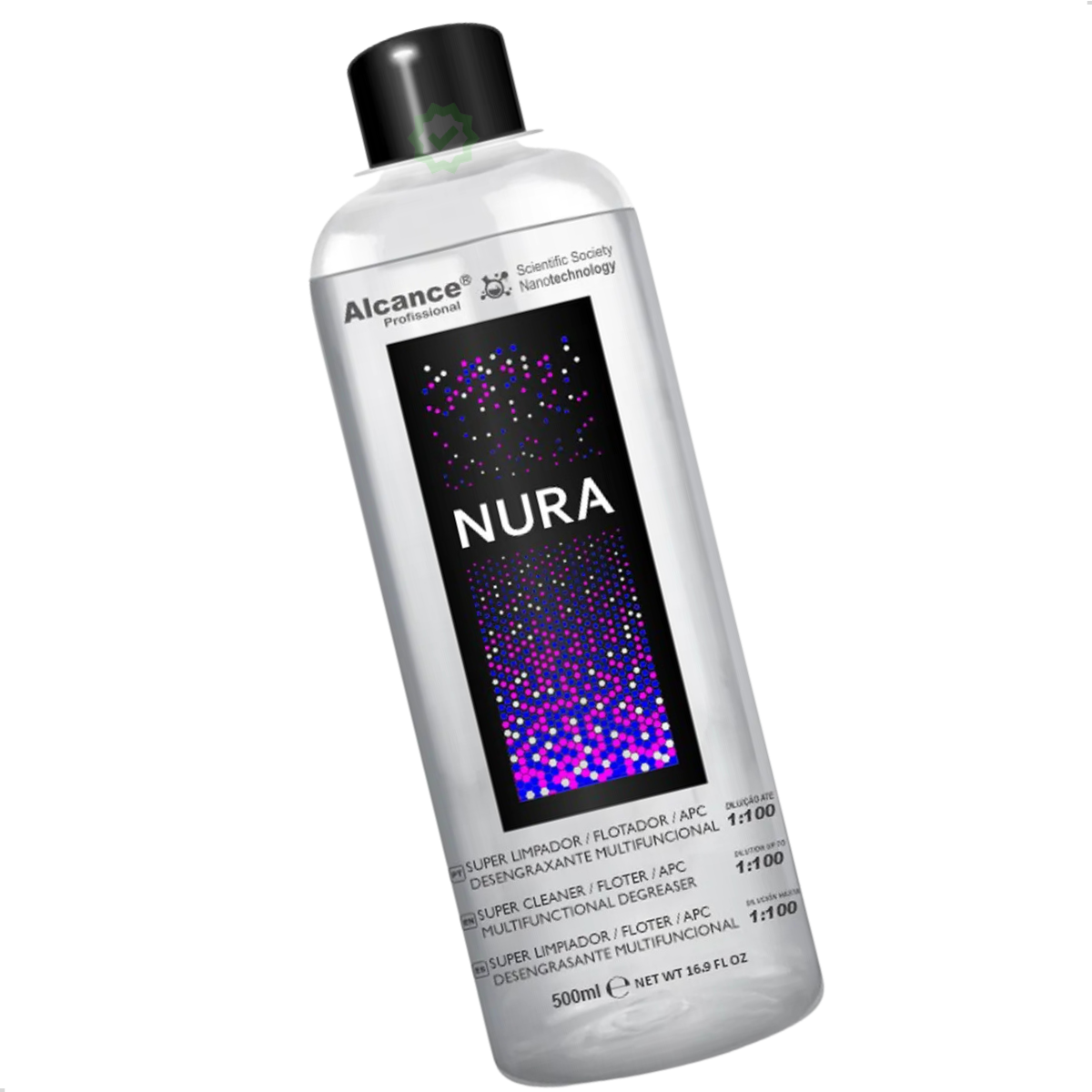NURA foi desenvolvido para uso profissional na remoção de sujidades difíceis sem esforço mecânico. Com biotecnologia em enzimas e solventes a base de óleos naturais aliado a tensoativos de ultima geração proporcionando eficiente poder de limpeza e solvência de detritos e incrustações orgânica, inorgânica e poluições atmosféricas sem agredir a superfície. Elimina a carbonização, precipitação, coagulamento provocado por proteínas. Elimina a caramelização provocados por lactose e hidratos de carbono. Elimina precipitações provocadas por sais minerais. Elimina polarizações e oxidações provocadas por graxas e gorduras. Durante a limpeza da superfície mantém as partículas de sujeira em suspensão impedindo-a de voltar ao substrato.